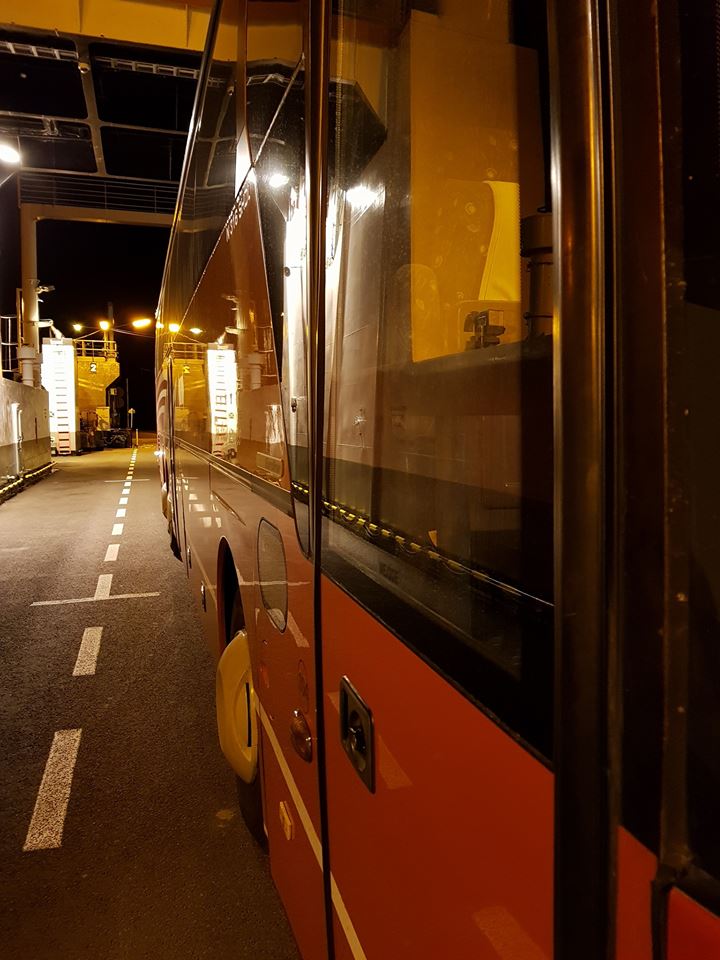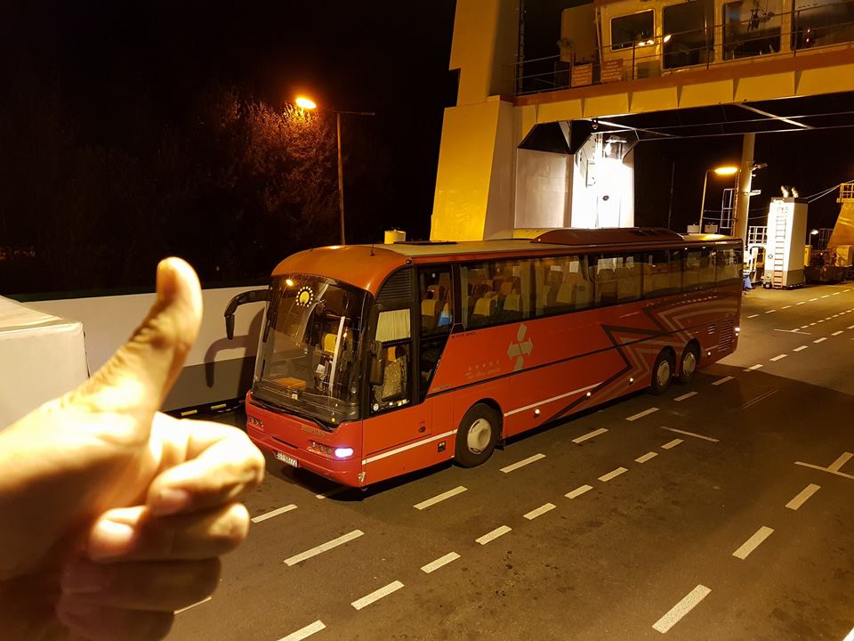 Autko mniamuśnie sunie ale wiater w porywach niestety rozwalał system. Póki co gdyby nie 1h oczekiwania na prom Krasibór IV byłoby niecałe 10h a tak dusza